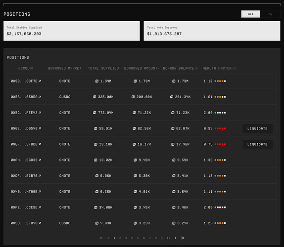 In order to provide much-needed transparency to NOTE collateral and the lending market, we’ve introduced a Positions Table. This new section provides real-time visibility into all live positions on the CLM w/ their health factors.